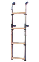 Складной трап (складывается пополам) из нержавеющей стали с 3 деревянными ступеньками шириной 270 мм. Диаметр стоек: 25 мм. Крепление: два кронштейна с двумя отверстиями под винты в каждом. Производитель: «Ceredi», Италия.