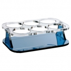 Подставка для шести стаканов (подходит для всех стаканов из коллекции «Marine Business»). Разборная конструкция для уменьшения объема при хранении. Резиновые вставки в основании для предотвращения скольжения. Материал — акрил.