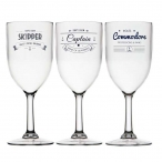 Набор бокалов из прозрачного метилстиренового стекла — одного изнаиболее ударостойких материалов на рынке морской посуды. Каждый бокал в наборе имеет индивидуальный принт, обозначающий различные должности в команде (капитан, шкипер, кок и т.д.) - вы никогда не потеряете свой собственный бокал!