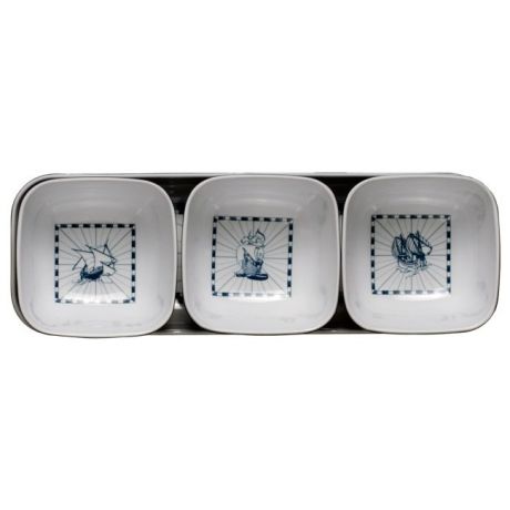 Набор для снеков, соусов и закусок. 4 предмета (3 миски + поднос), изготовленных из меламина (керамоподобного пластика). Цена за набор.