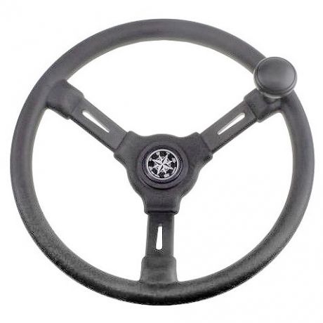 Пластиковое рулевое колесо с ободом диаметром 350 мм. Грибовидная рукоятка для облегчения проворачивания. Ступица круглой формы с конусом cтандартного размера.