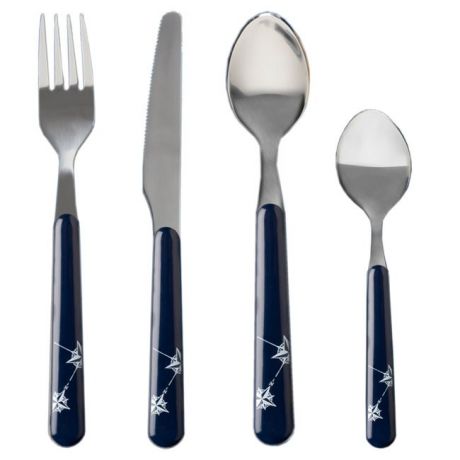 Набор из 24 столовых приборов из высококачественной нержавеющей стали с пластиковыми рукоятками (вилка, ложка, нож, чайная ложка — по 6 шт). Цена за набор.