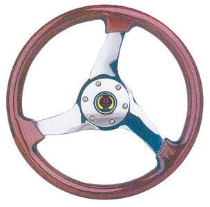 Рулевое колесо с полированными нержавеющими спицами и ободом из махогани (350 мм). Ступица круглой формы имеет посадочный конус стандартного размера.