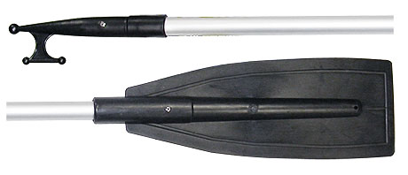 Пластиковое весло и багор на одной телескопической рукоятке.