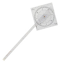 Линейка с транспортиром Дугласа из прозрачного пластика. Применяется в штурманских работах для прокладки курса с учетом склонения, считывания пеленгов. Производитель: Micron, Италия.