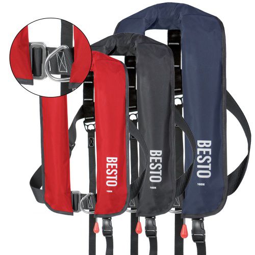 Новинка! Обновленная версия популярного автоматического спасательного жилета. При прежних весе и размере (в сложенном виде) жилет теперь обладает увеличенной плавучестью (16,5 кг вместо 15 кг)! Паховая стропа, необходимая для того, чтобы при попадании в воду жилет не поднимался в верхнюю часть туловища и не давил на шею, теперь входит в комплект! Жилет не стесняет движений и не затрудняет теплообмен тела на жаре. Автоматически наполняется воздухом при попадании в воду. Имеется возможность принудительного ручного активирования механизма наполнения. Полиэстеровый чехол-подкова красного, синего и черного цветов предохраняет надувную камеру от повреждений. Надувная камера ярко-оранжевого цвета имеет подковообразную форму, что способствует удержанию головы человека лицом вверх, что очень важно если попавший в воду человек по каким-то причинам теряет сознание. Оснащен аварийным свистком, страховочным поясом с D-образным кольцом для крепления страховочного линя и светоотражающими нашивками. Имеется трубка для аварийного надувания жилета ртом. Комплект для перезарядки жилета приобретается отдельно.