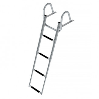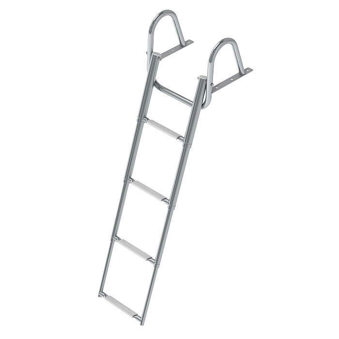 Кормовой телескопический быстросъемный трап с поручнем, имеющий белое противоскользящее покрытие.