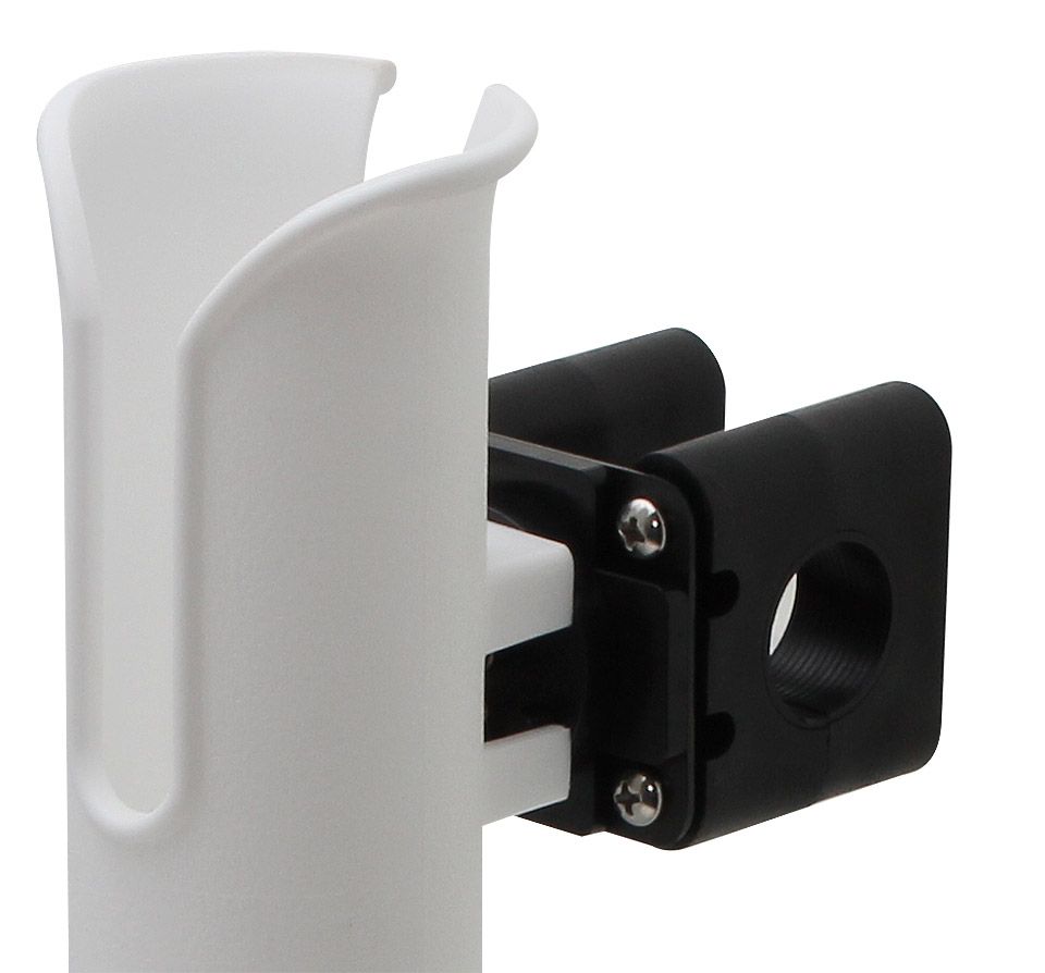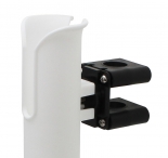 Пластиковый стакан под удилище. Крепится на трубу релинга. Шарнирная конструкция крепления позволяет менять угол наклона стакана относительно релинга.