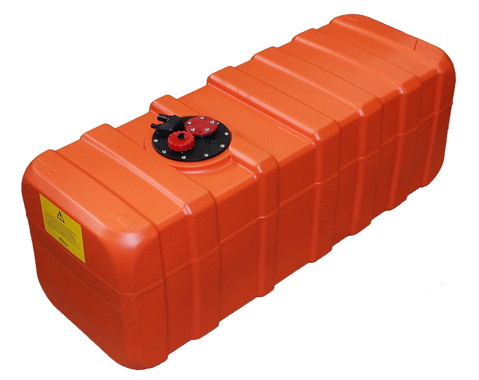 Заливная горловина с резьбовой крышкой. Два патрубка под шланги отбора топлива и вентиляции. Предусмотрена возможность установки датчика уровня топлива (приобретается отдельно). Инспекционный лючок для осмотра и очистки внутренней полости бака.