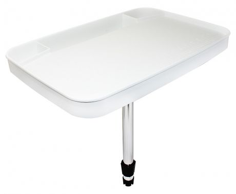 Пластиковый столик для разделки рыбы и работы с наживкой. Крепление под стакан держателя удилища.