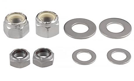Две пары гаек с шайбами для крепления штока гидроцилиндра. Нержавеющая сталь высокой прочности.