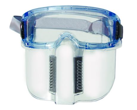 Защитные очки со щитком, прозрачные, из эластичного материала, с боковыми загибами и защищенными вентиляционными отверстиями на верхней и нижней части полумаски. Покрыты составом, предотвращающим появление царапин и запотевания.