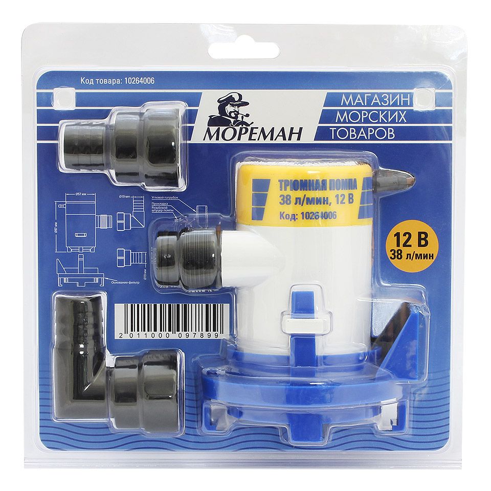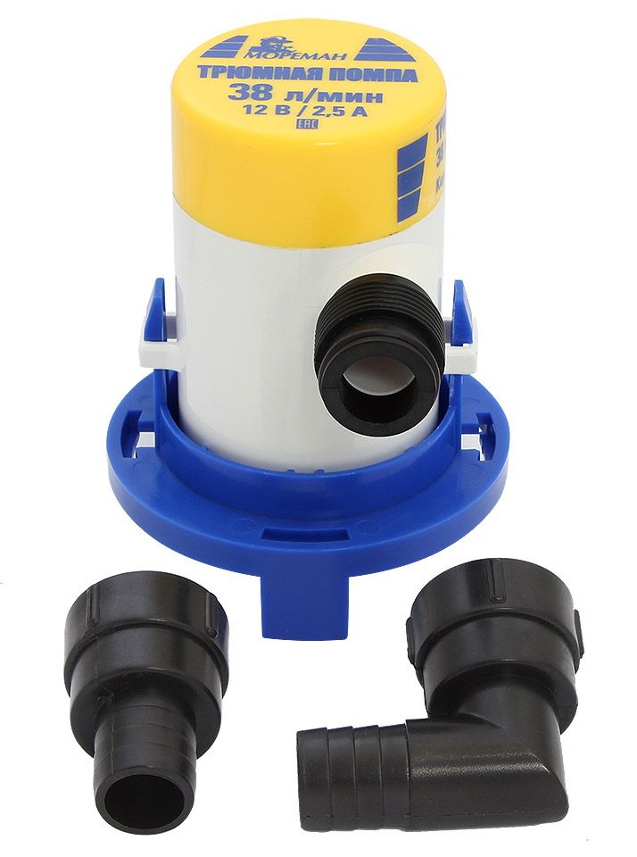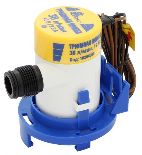 Электрическая трюмная помпа производительностью 38 л/мин*. Применяется для откачки трюмной и подсланевой воды. Включается по мере необходимости владельцем судна или по мере поступления воды автоматическим выключателем (приобретается отдельно). Съемное основание-фильтр может быть закреплено винтами или саморезами как к вертикальной, так и к горизонтальной поверхности.