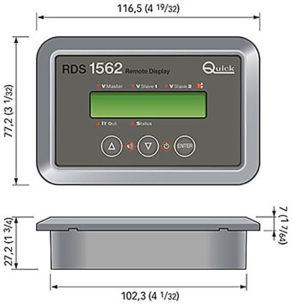 Внешний дисплей для зарядных устройств серии SBC NRG+ (Plus). Жидкокристаллический информационный дисплей для зарядных устройств «Quick» средней и высокой мощности серии NRG+ (начиная с SBS 500 NRG+). Позволяет визуально контролировать процесс заряда 1, 2 или 3 аккумуляторных батарей. Отображает зарядный ток, подаваемый на каждую батарею и общий зарядный ток. Отображает текущую стадию процесса заряда. Шесть уровней яркости и пять уровней контрастности дисплея. Совместим как с 12-, так и с 24-вольтовыми моделями. Подключается по CAN-шине.