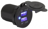 Гнездо питания с двумя USB гнездами. Два USB гнезда позволяют заряжать два устройства одновременно.