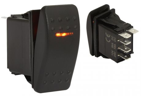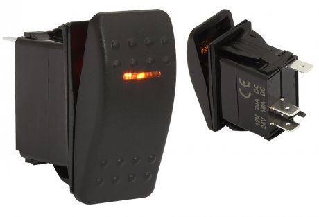 Клавишные выключатели в брызгозащитном исполнении (IP56). Снабжены оранжевыми светодиодными индикаторами, вызывающими минимальное утомление глаз в ночное время (1 светодиодный индикатор). Представлены в трех вариантах исполнения (двухпозиционные, двухпозиционные с возвратной пружиной, трехпозиционные). Модели с возвратной пружиной рекомендуется использовать для подключения оборудования, работающего кратковременно (к примеру, сигнальные горны, сирены) или оборудования, работа которого должна быть возможна только под постоянным контролем оператора (к примеру, якорные лебедки). Произведены по специальному заказу компании «Мореман».