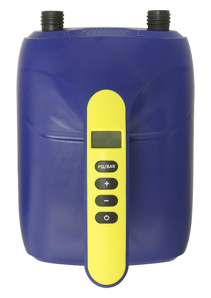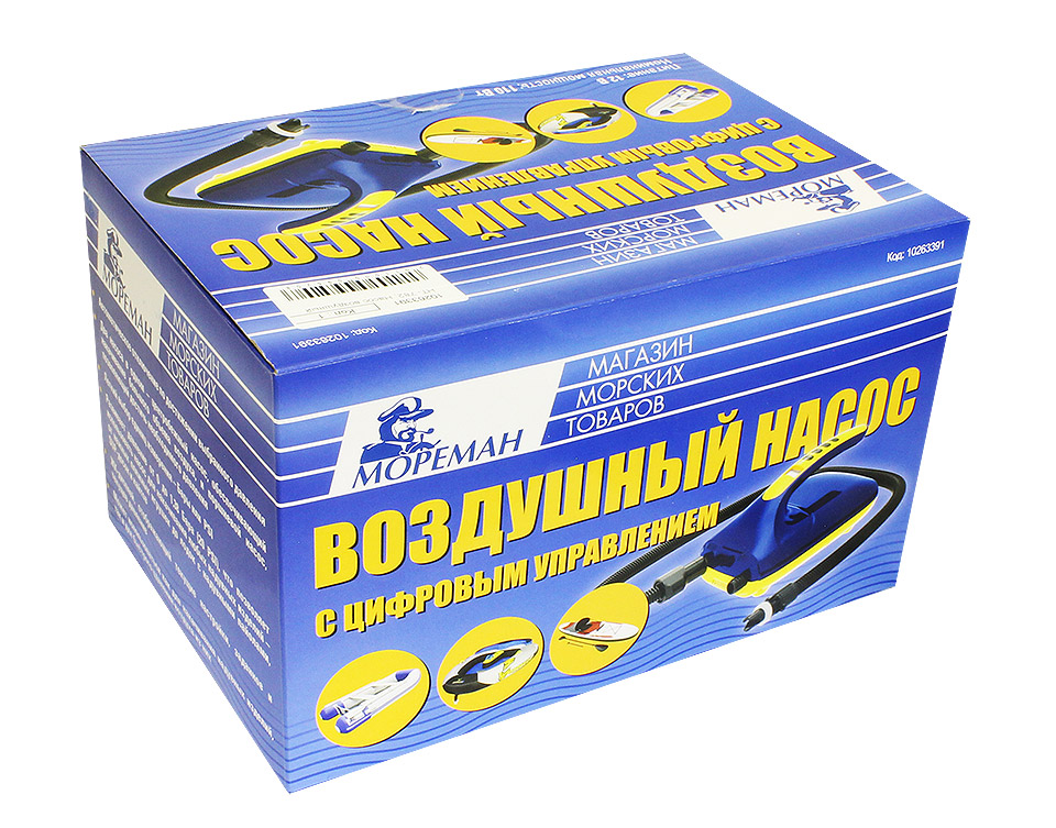 Универсальный воздушный насос с цифровым управлением. Развивает давление от 5 до 1380 мБар, благодаря чему его можно использовать для накачивания широкого спектра надувных изделий - от пляжных аттракционов и буксируемых баллонов ("ватрушек") до надувных лодок (в том числе лодок с пайолами высокого давления), SUP-досок и кайтов, требующих высокого давления. Выбор необходимого давления (при достижении которого насос отключится автоматически) производится путем нажатия кнопок, выбранное давление отображается на ЖК-дисплее. Есть возможность выбора единиц измерения (доли Бара или фунты на квадратный дюйм - PSI). Насос двухступенчатый, сочетает в одном корпусе высокопроизводительный центробежный насос, быстро нагнетающий основной объем воздуха при давлении около 5 мБар и поршневой насос, который доводит давление до выбранного пользователем значения. Насос комплектуется кабелем питания со штекером под гнездо прикуривателя лодки или автомобиля. Имеется возможность автономной работы насоса, для чего следует дополнительно приобрести батарейный блок (арт. 10263810).