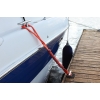 Швартовный амортизатор для малых судов. Смягчает рывки швартовов, уменьшает амплитуду качки лодки, предотвращает износ тросов и швартовных приспособлений. Окантован светоотражающей лентой для облегчения распознавания в темное время суток.