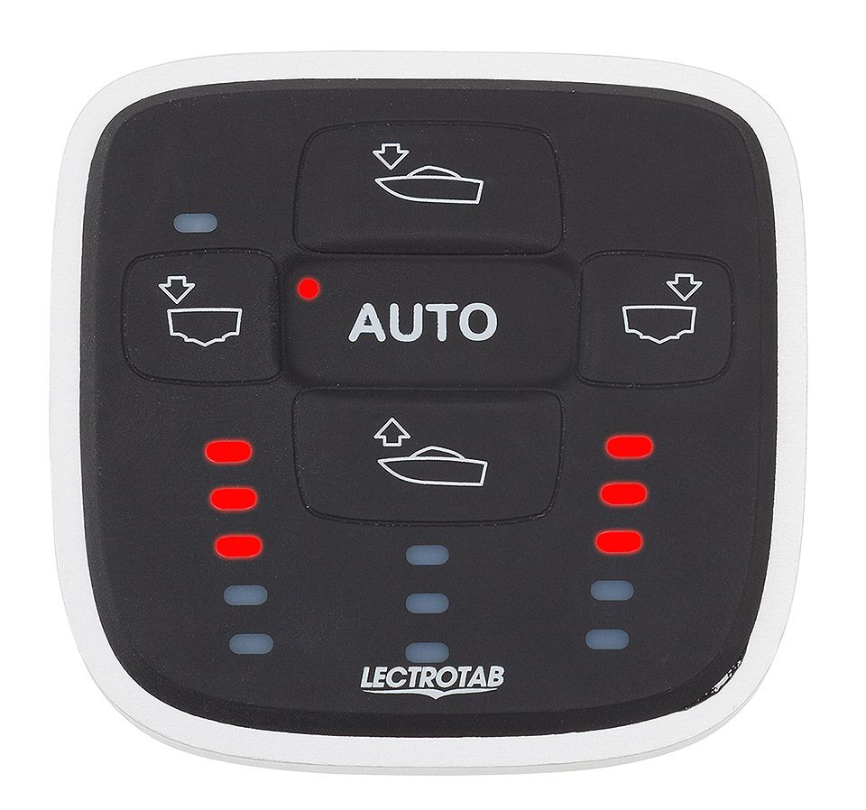 Пригодна для одного поста управления транцевыми плитами с одиночными приводами. Имеет светодиодный индикатор положения транцевых плит с автоматическим изменением яркости в зависимости от освещенности. Имеет функцию автоматического подъема транцевых плит при выключении зажигания.