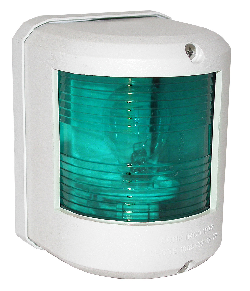 Зеленый бортовой отличительный огонь с лампой накаливания. Устанавливается на правом борту судна. Обеспечивает освещение сектора с углом в основании 112,5 градусов. Линза Френеля способствует распределению светового потока в горизонтальной плоскости, что увеличивает дальность видимости огня при неизменной мощности лампы. Рекомендуется для судов длиной до 20 м.