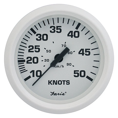 Двойная шкала узлы/км/ч. Стойкое к царапинам стекло. Белый циферблат с черными цифрами и подсветкой по периметру. Черная стрелка с силиконовым демпфером, гасящим вибрацию и предотвращающим дрожание.