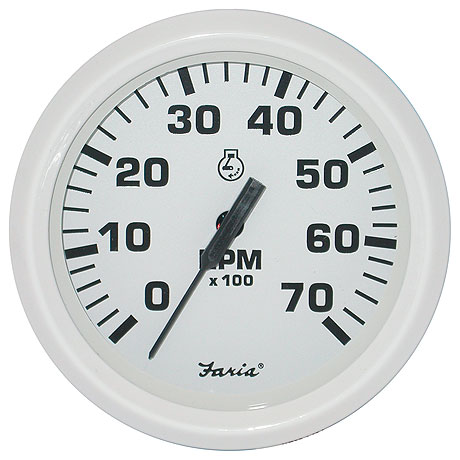 Тахометр для бензиновых двигателей. Стойкое к царапинам стекло. Белый циферблат с черными цифрами и подсветкой по периметру. Черная стрелка с силиконовым демпфером, гасящим вибрацию и предотвращающим дрожание. Экранированная конструкция для защиты от электромагнитных помех.