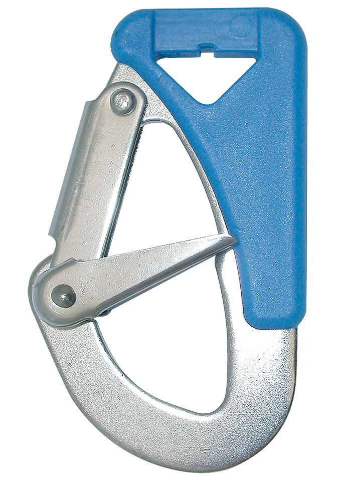 Карабин с дополнительной защитой от самопроизвольного открытия. Для открытия основного язычка карабина требуется нажать надополнительную подпружиненную защелку, что практически невозможно сделать случайным движением. Может применяться для изготовления страховочных линий и обвязок.