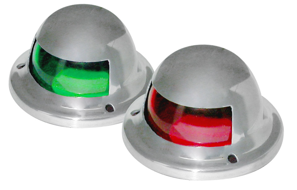 Бортовые навигационные огни (красный и зеленый) в корпусах из нержавеющей стали. Устанавливаются на правом и левом бортах судна. Обеспечивает освещение секторов с углом в основании 112,5 градусов. Продаются парами.