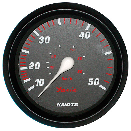 Двойная шкала узлы/км/ч. Стойкое к царапинам стекло. Черный циферблат с белыми цифрами, красными делениями и подсветкой по периметру. Белая стрелка с силиконовым демпфером, гасящим вибрацию и предотвращающим дрожание.
