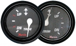 Указатели положения трима (устройства изменения угла наклона подвесного мотора/ угловой колонки). Стойкое к царапинам стекло. Черный циферблат с белыми цифрами и подсветкой по периметру. Белая стрелка с силиконовым демпфером, гасящим вибрацию и предотвращающим дрожание. Экранированная конструкция для защиты от электромагнитных помех.