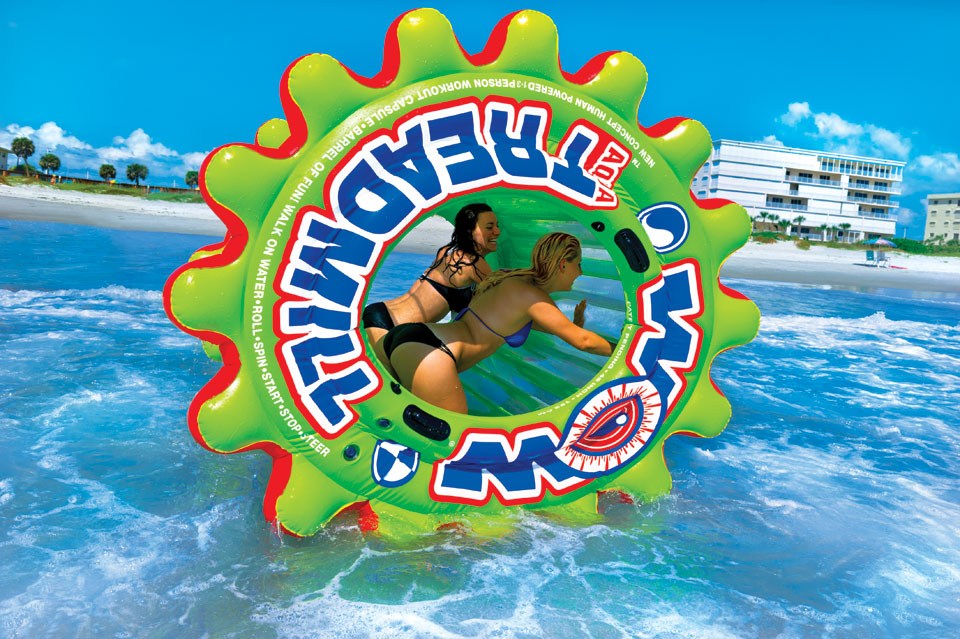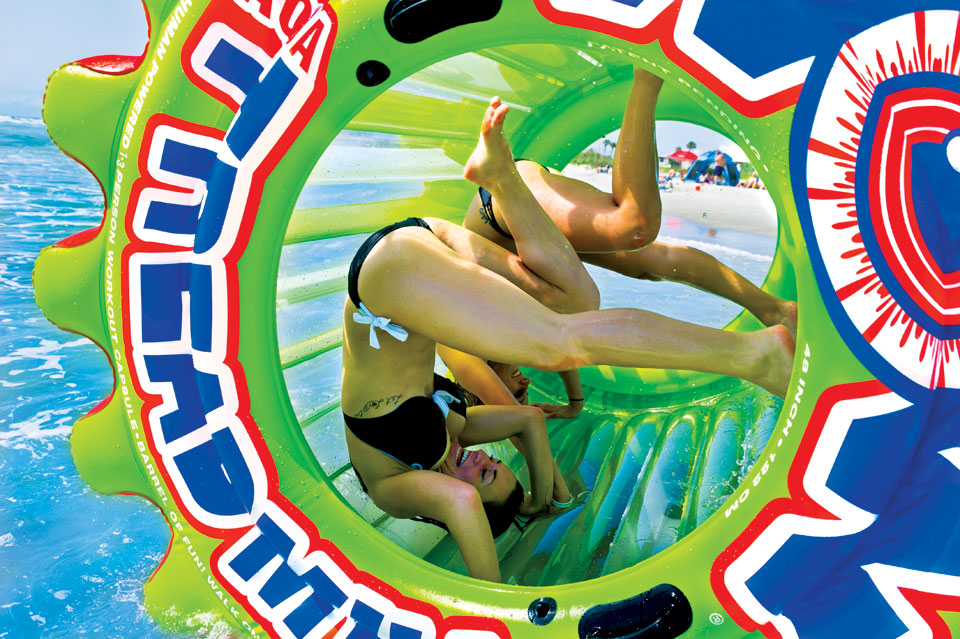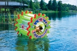 Водное колесо. Перемещайтесь по воде, переступая по надувным баллонам этого гигантского колеса! Это развлечение никого не оставляет равнодушным!