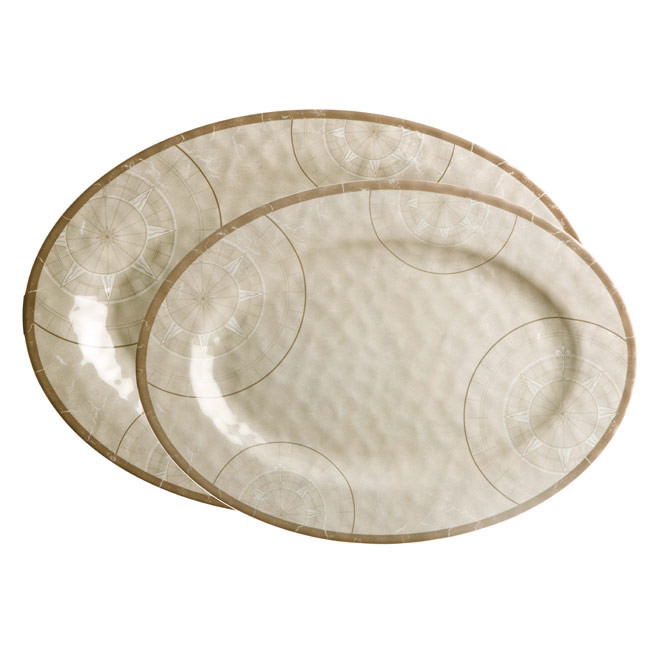 Две большие овальные тарелки. Изготовлены из меламина — стойкого к ударам и царапинам керамоподобного пластика. Цена за 2 шт.