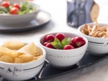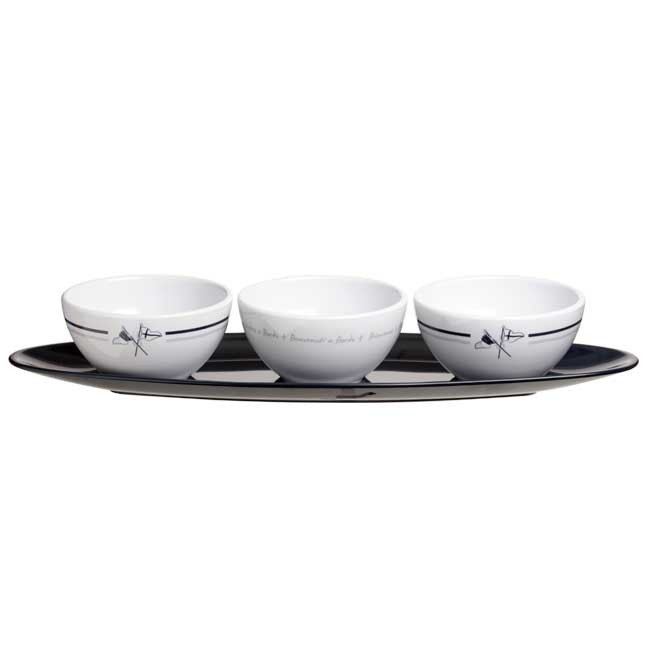 Поднос (43х13 см) и три миски из меламина — стойкого к ударам и царапинам керамоподобного пластика. 4 предмета в наборе. Цена за набор.