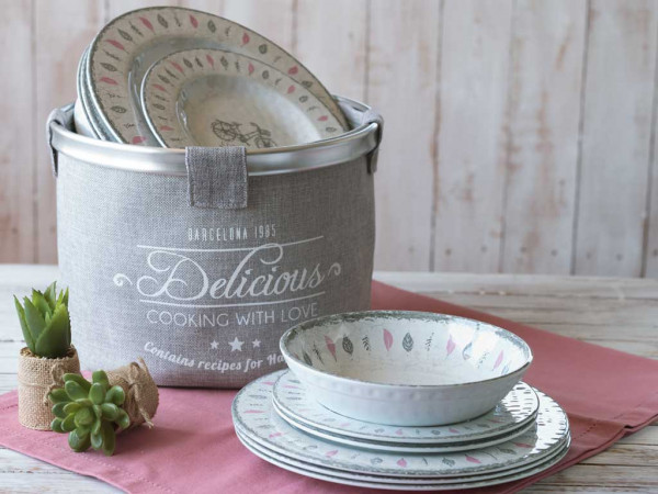 Набор посуды из меламина — стойкого к ударам и царапинам керамоподобного пластика. Большая тарелка, десертная тарелка, суповая миска - по 6 шт (всего 18 предметов в наборе). Цена за набор.