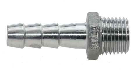 Переходник с наружной резьбой 1/4 дюйма и патрубком под шланг с внутренним диаметром 8 мм.