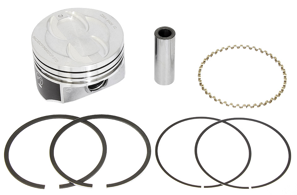 Поршень в комплекте с кольцами и пальцем, стандартный размер.