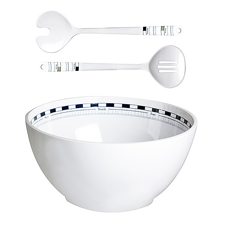 Салатная миска и две салатных ложки, изготовленные из меламина (стойкого к ударам и царапинам керамоподобного пластика). 3 предмета в наборе.