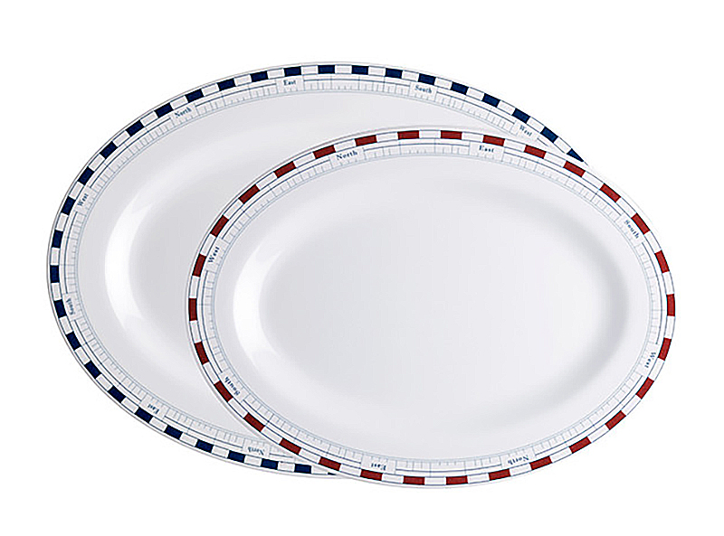 Две овальные тарелки, изготовленные из меламина (стойкого к ударам и царапинам керамоподобного пластика). Цена за 2 штуки.