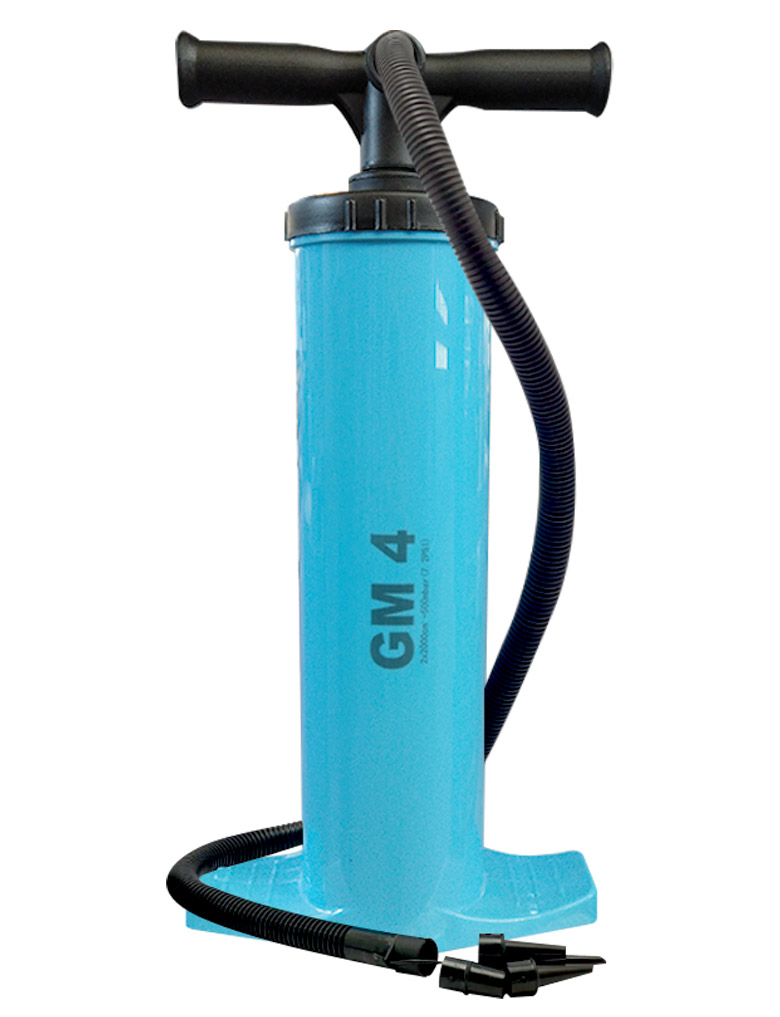 Ручной насос двойного действия (подача воздуха в шланг осуществляется при движении поршня как вверх, так и вниз). Шланг снабжен тремя патрубками разного диаметра и универсальным адаптером, позволяющим подобрать практически любой необходимый диаметр. Защита от попадания песка. Максимальное развиваемое давление: 500 мБар.