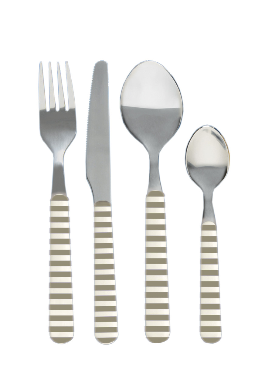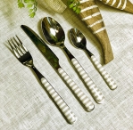 Набор столовых предметов из качественной нержавеющей стали с рукоятками из пластика. Вилка, нож, большая и чайная ложка - по 6 шт (всего 24 предмета в наборе). Цена за набор.