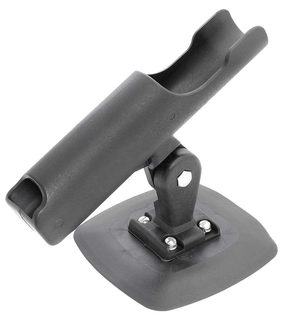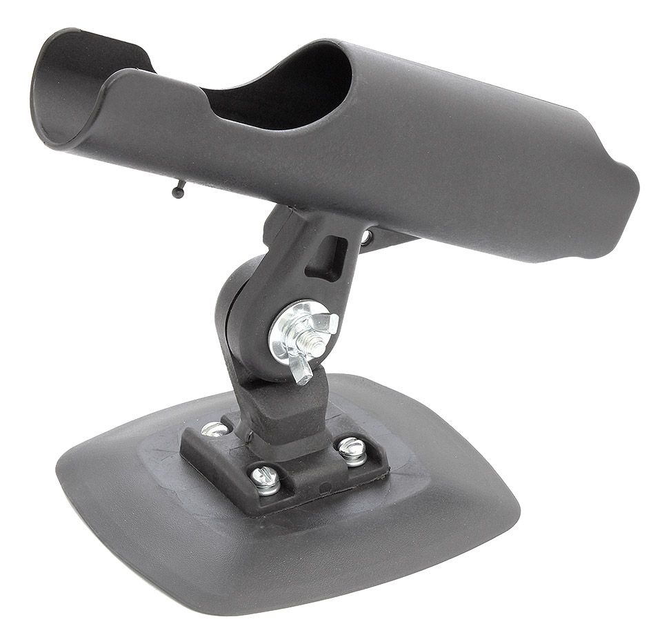 Держатель удилища из прочного пластика. Имеет возможность регулировать угол наклона удилища. Поставляется вместе с основанием, которое наклеивается на борт надувной лодки.