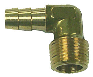 Угловой штуцер с наружной резьбой 1/4 и патрубком под шланг 3/8 дюйма.