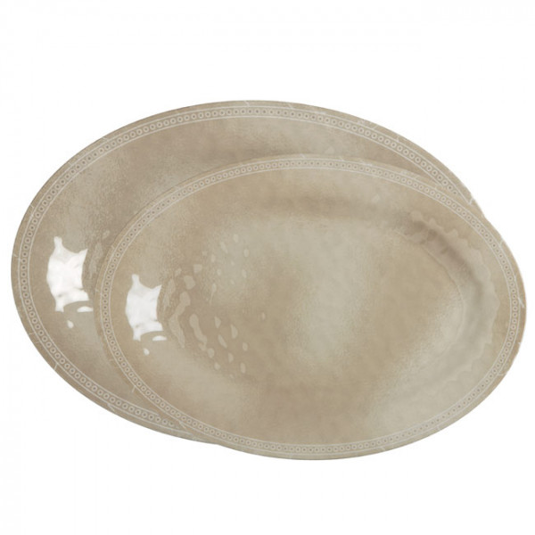 Две овальные сервировочные тарелки (41x29 и 35x26 см). Изготовлены из меламина — стойкого к ударам и царапинам керамоподобного пластика. 2 штук в наборе, цена за набор.