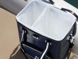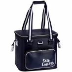 Набор для пикника \"Sea Lovers\". Включает удобную влагозащищенную сумку с отдельным изотермическим отделением, позволяющим длительное время поддерживать заданную температуру продуктов и напитков, а также набор посуды для 4 человек (4 плоские тарелки и 4 глубокие миски из меламина (стойкого к ударам и царапинам керамоподобного пластика), 4 бокала, 4 вилки и 4 ножа).
