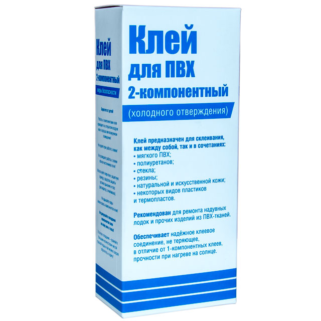 2-компонентный клей, предназначенный для склеивания мягкого ПВХ, полиуретанов, стекла, резины, натуральной и искусственной кожи, а также некоторых видов пластиков и термопластов, как между собой, так и в сочетаниях. Рекомендован для ремонта надувных лодок и прочих изделий из ПВХ-тканей. Обеспечивает надежное клеевое соединение, не теряющее, в отличие от 1-компонентных составов, прочности при нагреве на солнце. Отверждение - холодное, то есть клеевой шов не нуждается в нагреве для схватывания. Компоненты клея расфасованы фабричным способом в герметично запаянные алюминиевые тубы, что обеспечивает долгий срок хранения продукта.