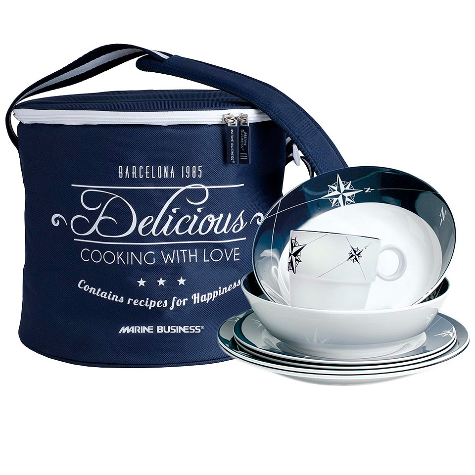 Набор посуды из меламина — стойкого к ударам и царапинам керамоподобного пластика. 6 плоских тарелок, 6 суповых мисок, 6 десертных мисок, 6 кружек. Цена за набор.