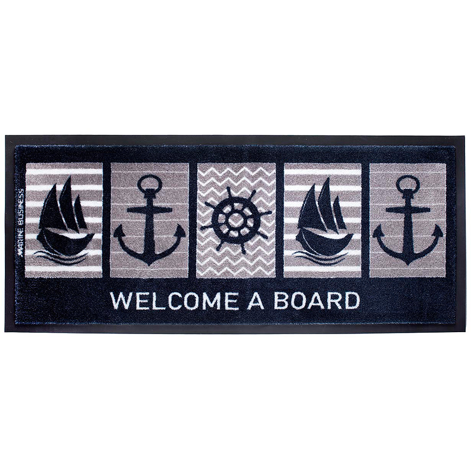 Коврик из полиамида. Нескользящая латексная основа. Стойкие к выгоранию красители. Может использоваться как у трапа на входе в лодку, так и во внутренних помещениях судна. Цена за 1 шт.
