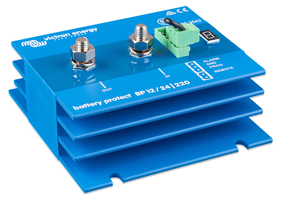 Устройства для защиты аккумуляторных батарей от чрезмерного разряда. Отключают нагрузку при достижении напряжения аккумуляторной батареи заданного пользователем уровня, предохраняя, таким образом, батарею от повреждения, вызванного глубоким разрядом и(или) сохраняя в ней заряд, достаточный для запуска двигателя. Уровень напряжения отключения задается переключателями на корпусе устройств и отображается на дисплее. Совместимы как с традиционными свинцово-кислотными, так и с литиевыми батареями. Отличаются чрезвычайно низким собственным энергопотреблением. Обеспечивают защиту от перенапряжения - нагрузка будет автоматически отключена если напряжение на батарее по каким-то причинам поднимется до 16 В или 32 В (при номинале 12 В или 24 В). Возможность подключения световой или звуковой сигнализации о падении напряжения ниже заданного уровня (имеет 12-секундную задержку, таким образом кратковременное падение напряжения во время запуска двигателя не приведет к срабатыванию сигнализации). 1,5-минутная задержка отключения для предотвращения ложных срабатываний.