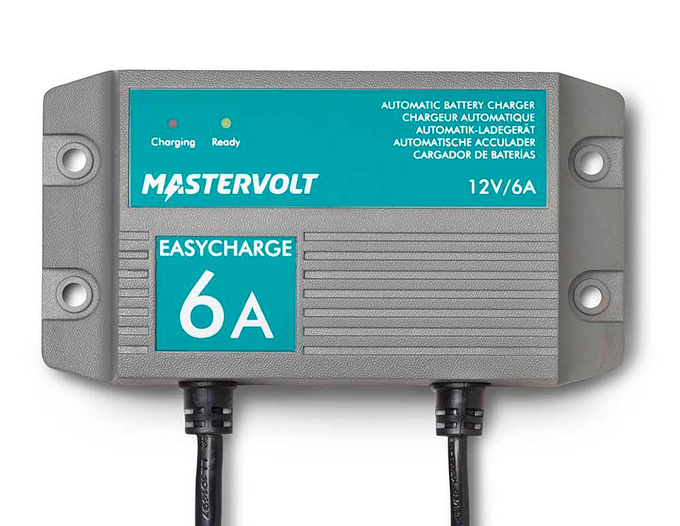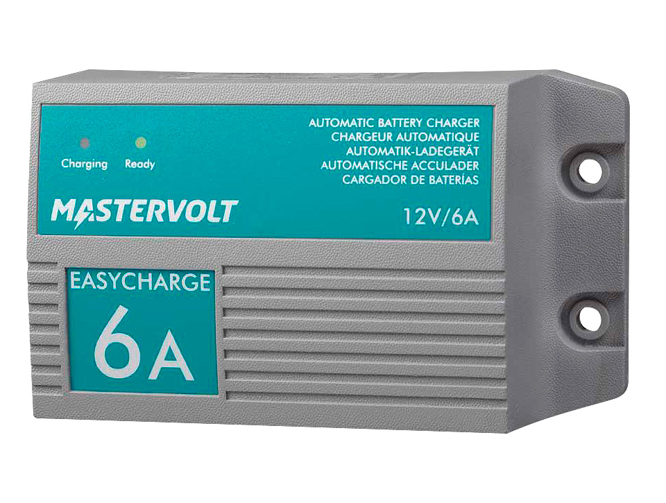 Влагозащищенное зарядное устройство, обеспечивающее полностью автоматическую зарядку по классическому 3-стадийному алгоритму любых типов свинцово-кислотных аккумуляторных батарей (батареи с жидким электролитом, гелеобразным (Gel) и поглощенным (AGM) электролитом). Электрическая схема этого зарядного устройства полностью залита эпоксидным компаундом, что придает ему полную водонепроницаемость (класс защиты IP68). Эта же особенность конструкции делает его искробезопасным (но не исключает образование искр в местах контакта проводов питания и заряда - во избежание искрения контакты должны быть выполнены надежно и хорошо заизолированы!). Позволяет заряжать одну 12-вольтовую аккумуляторную батарею током до 6 А (заряд дополнительных аккумуляторных батарей может быть выполнен через дополнительные зарядные реле, максимальная суммарная рекомендуемая емкость батарей - 120 АЧ). Универсальное питание 110/220В. Встроенный гальванический изолятор, предупреждающий появление электрического потенциала на элементах корпуса судна и устраняющий таким образом риск развития гальванической коррозии. Встроенная защита от переполюсовки, короткого замыкания, перенапряжения, перегрева.