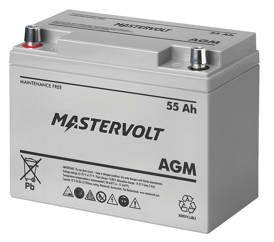 Стартерно-тяговые аккумуляторные батареи AGM-типа (с поглощенным электролитом). Универсальные - отдают высокие стартерные токи, но в то же время могут более длительное время питать нагрузку без потери емкости в условиях эпизодической подзарядки, чем обычные батареи с жидким электролитом. Электролит в этих аккумуляторных батареях поглощен пластинами из стекловолокна, что обеспечивает аккумуляторам абсолютную герметичность и позволяет работать при значительных кренах. Батареи необслуживаемые и не выделяют взрывоопасный газ в процессе зарядки (при условии использования соответствующего автоматического зарядного устройства с правильно выбранным режимом заряда). Более толстые свинцовые пластины, изготовленные без использования вторично переработанного свинца, обеспечивают этим аккумуляторам более долгий срок службы и минимальную потерю емкости в процессе эксплуатации. Стандартные контакты А-типа могут быть откручены, а имеющиеся под ними резьбовые шпильки М8 (М6 на аккумуляторе 55 АЧ) использованы для объединения нескольких батарей в группу.